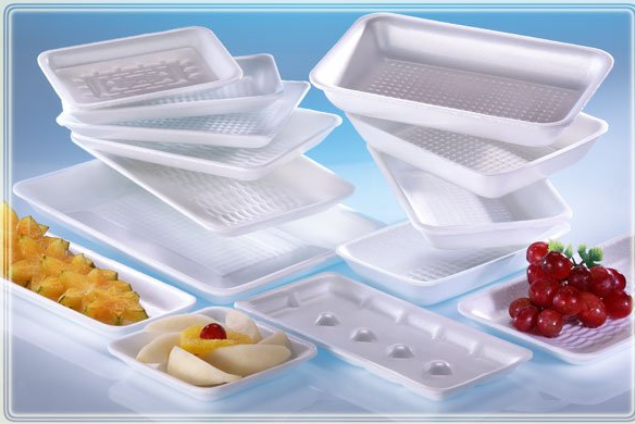 Polystyrene (PS) hạt được sử dụng làm nguyên liệu để sản xuất các tấm màng với chiều rộng và chiều dày là khác nhau.Sau đó các tấm được sử dụng trong các máy tạo để tạo hình ra sản phẩm khác nhau, chẳng hạn như hộp đựng thức ăn nhanh / hộp ăn trưa / khay thức ăn / đĩa thức ăn vv .
