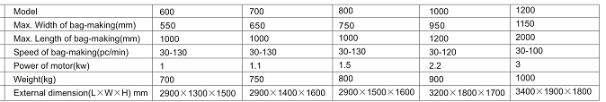 Thông số kĩ thuật máy làm túi cao tốc tự động
