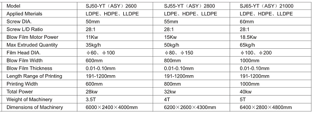 Thông số kĩ thuật máy thổi màng in nổi trực tiếp